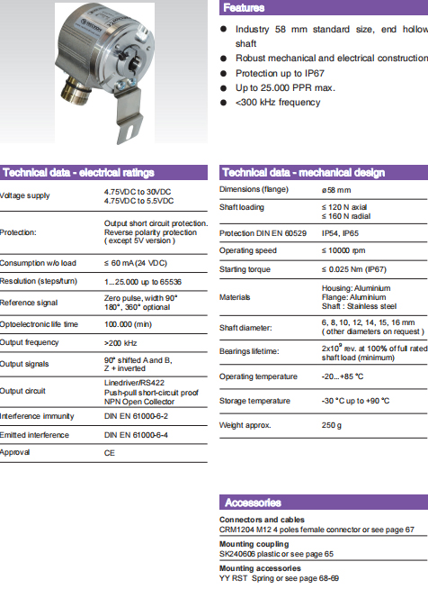 | ○ | 輸出頻率:<200 kHz | ○ | 輸出信號:90° 移相 A、B、Z ,+ 取反 | |||