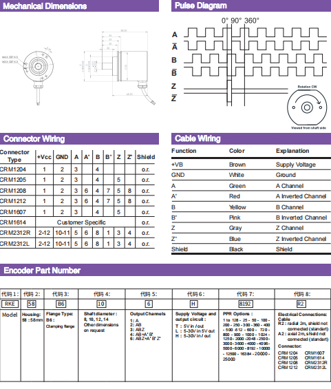 | ○ | 參考信號:零脈沖, 寬度 90°,180°,360° 可選 | ○ | 光電壽命:10 萬小時(min) | |||